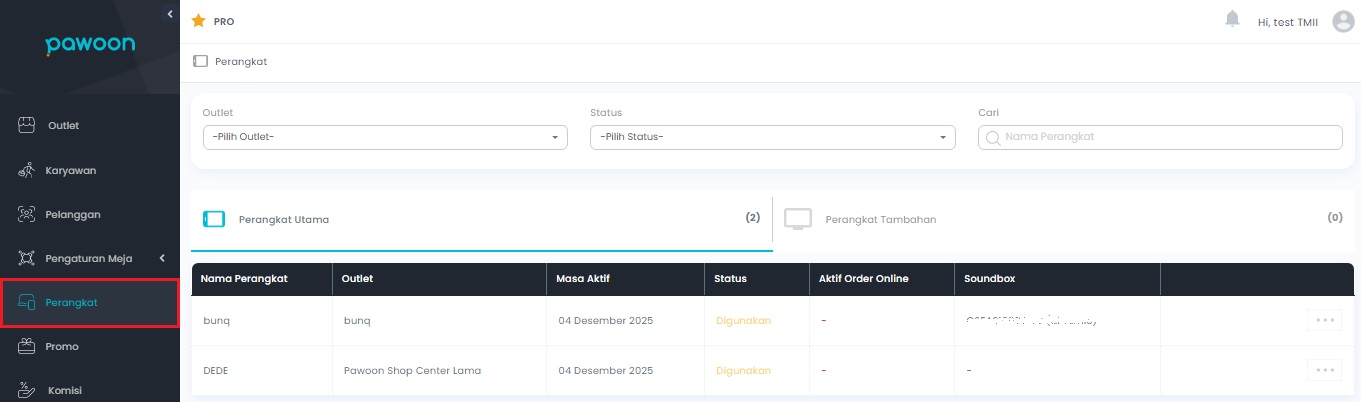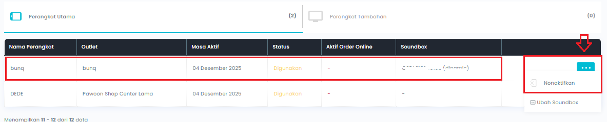 Anda tidak perlu khawatir, apabila muncul notifikasi seperti diatas Anda hanya perlu menonaktifkan perangkat melalui backoffice Pawoon. Untuk cara mudahnya, silakan mengikuti langkah-langkah berikut: